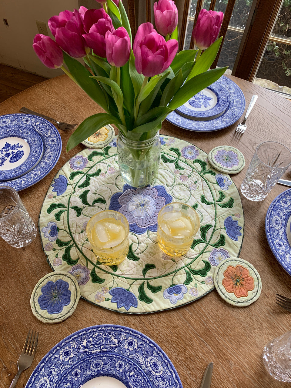 Make ‘In Bloom’ in it’s original layout for a round dining table or add on blocks to create a longer table topper, perfect for a rectangular dining tables.