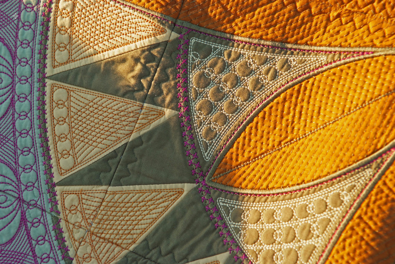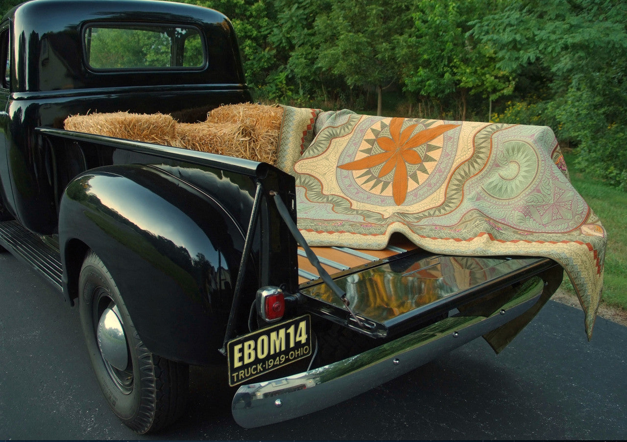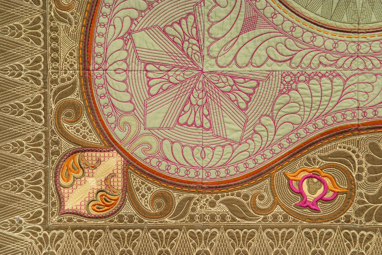 This beautiful HoopSisters design features a center medallion surrounded by undulating curves and bordered by a curvy applique border. Decorative flange echos the curves while stunning Sharon Schamber quilting highlights the quilt making this a family heirloom to cherish. An additional double French braid border is included with this heirloom quilt.