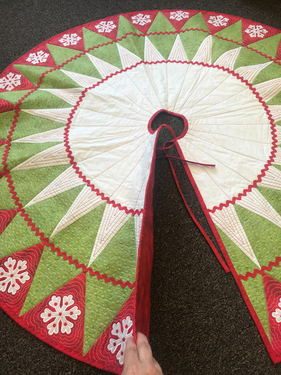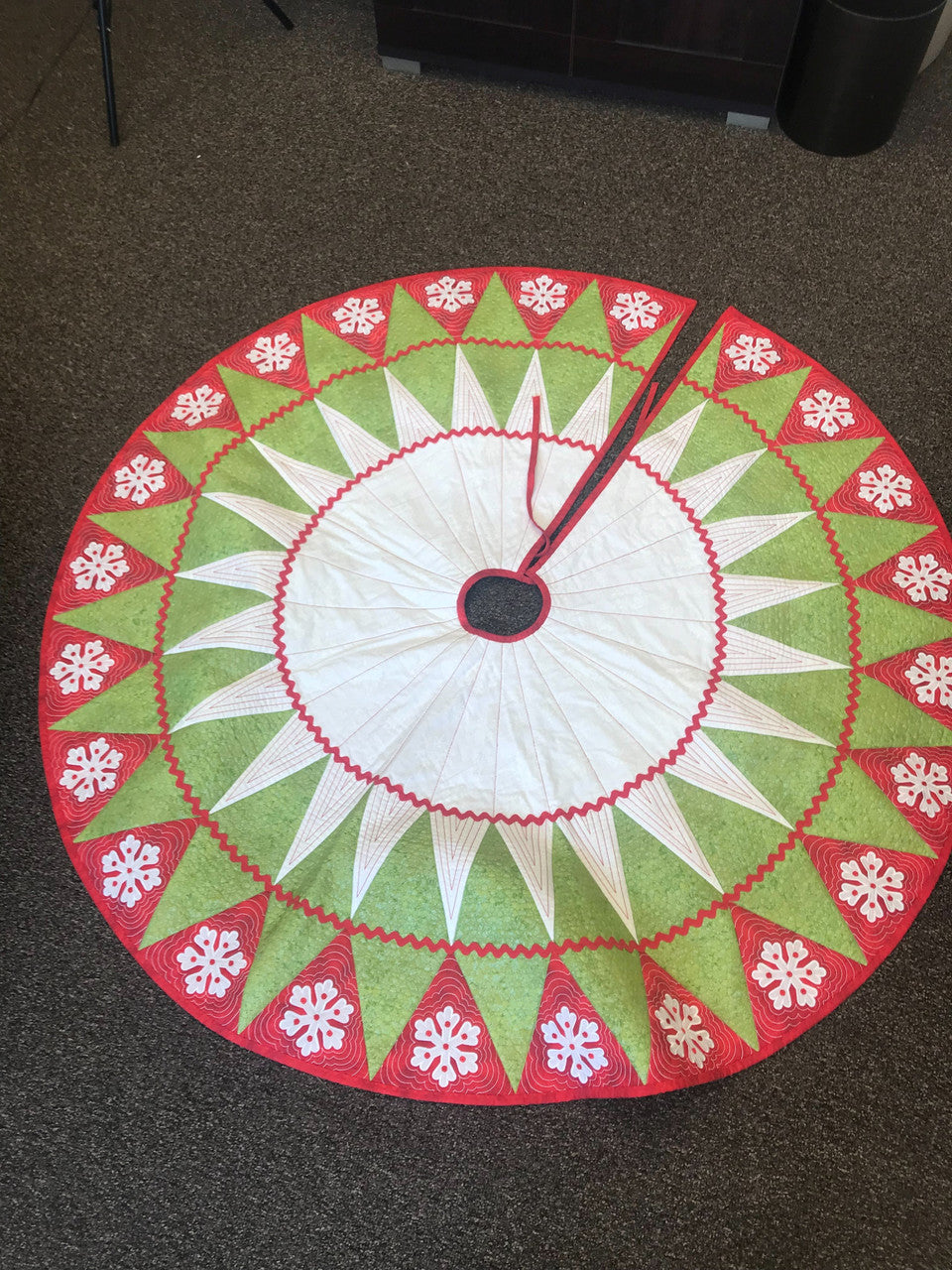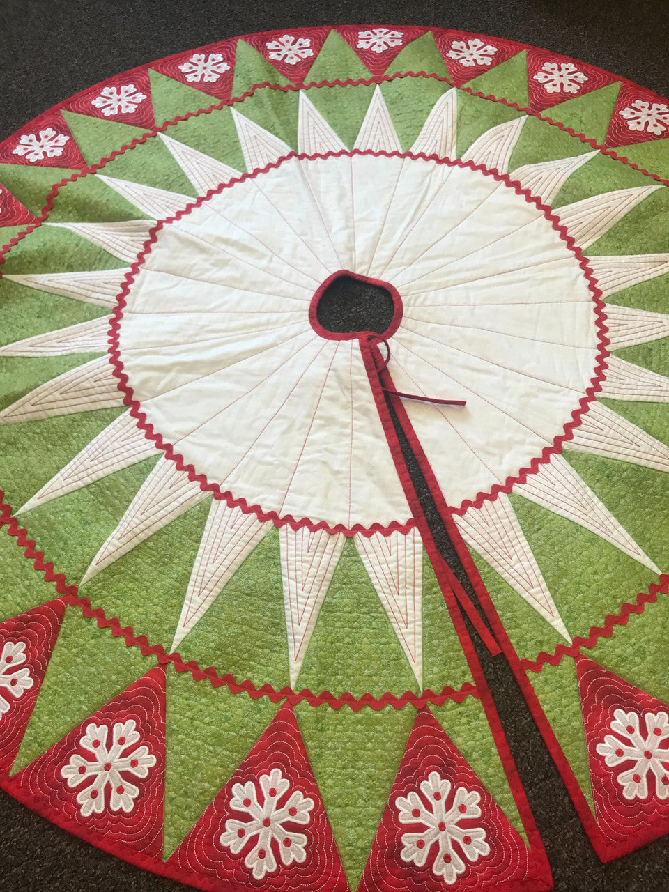 Tree skirt is 55" in diameter, fully lined and quilted.