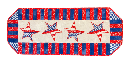 The matching Star Runner has star quilting in the background, and the same star applique as the Stand up Stars mentioned above.