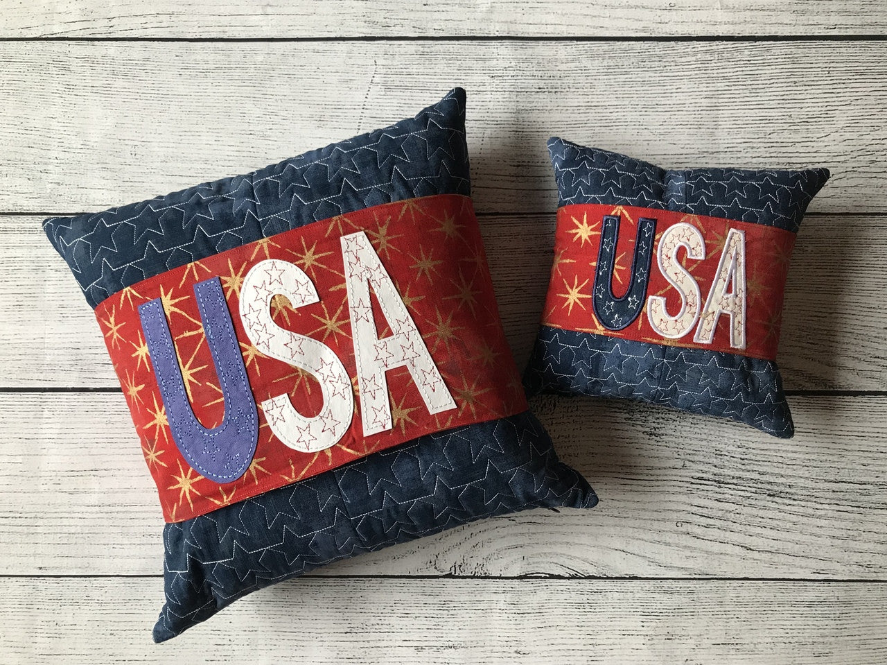 Patriotic Pillow embroidery files plus tote instructions from the 2019 HoopClub.