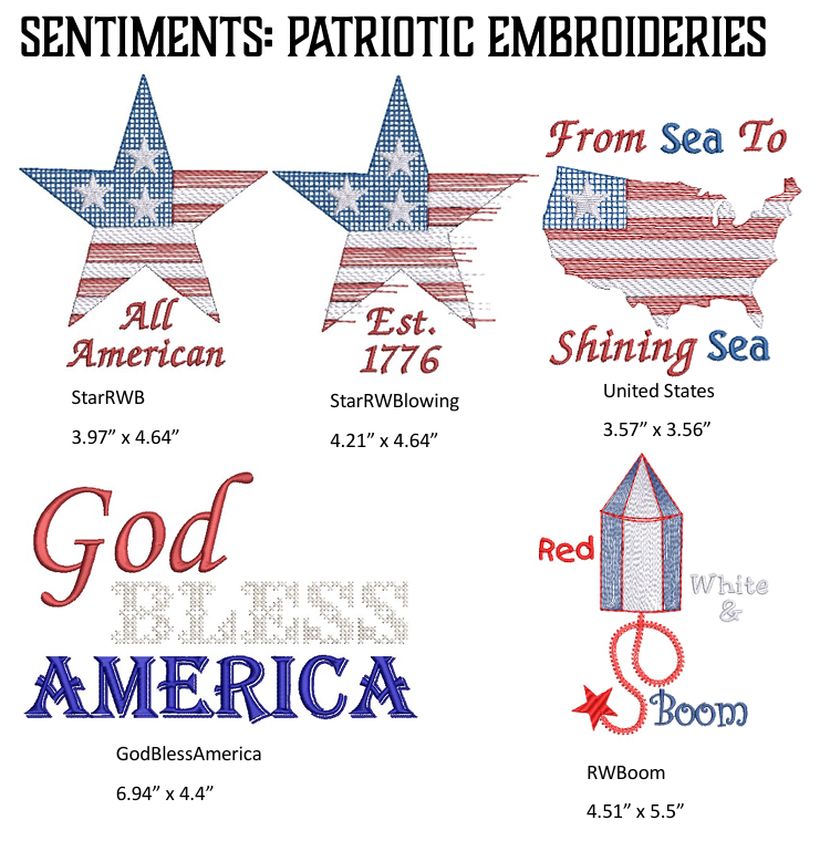 I am using the Patriotic Embroideries for several projects for home décor. Really like the variety.
