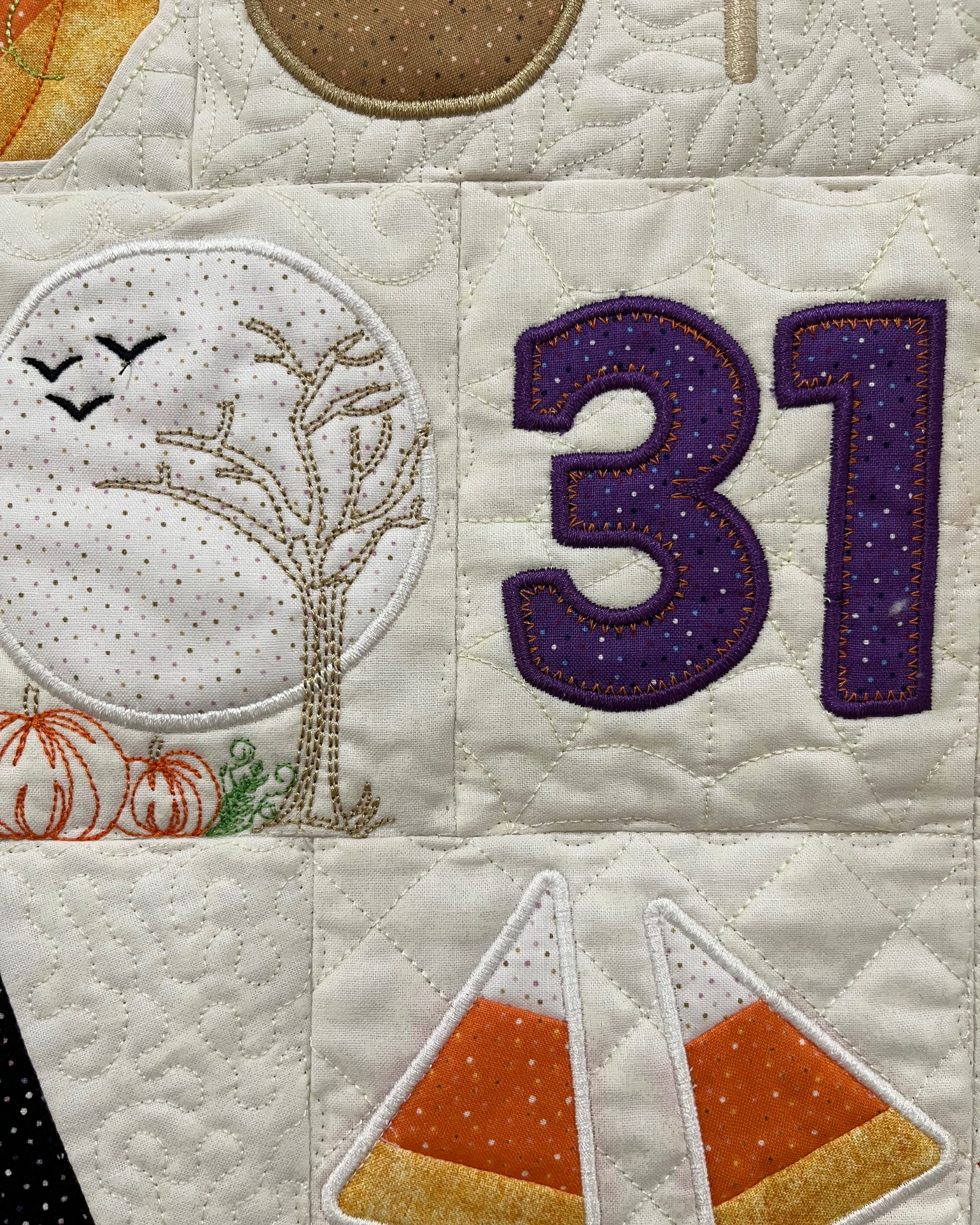 Get festive with witches' hats, candy corn, a cute bat, and caramel covered apples. This design uses both stitch-and-flip and applique techniques and is great for any HoopSisters skill level.