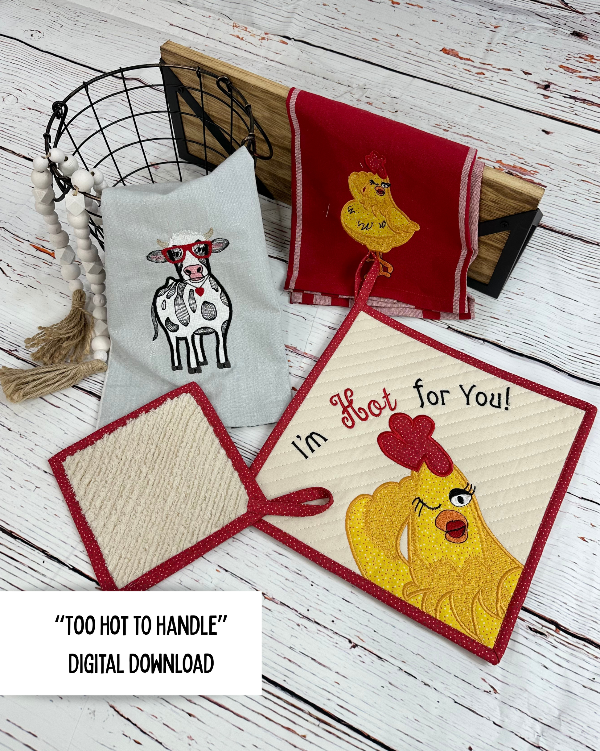 Create the most adorable Chenille Pot holders for your kitchen. One side is Chenille created in the hoop of your embroidery